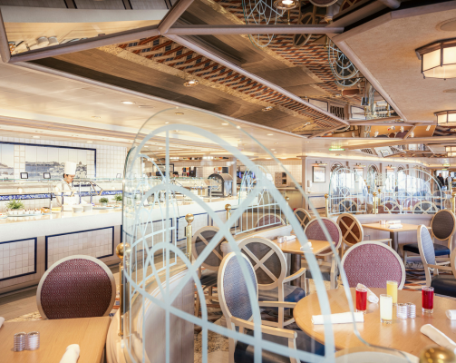 “A casual, bright and airy informal dining area with a daylong buffet selection and historic Cunard images lining the walls, which adds a sophisticated touch. Buffets can get overcrowded and feel hectic, but the Lido was always calm with plenty of available tables".