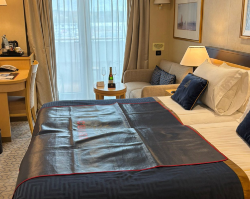 “A welcome bottle of sparkling wine was waiting for me, which was a pleasant surprise. The cabin itself was spacious, with ample storage and a comfortably sized bathroom. The balcony was about twice the size compared to the ships I’ve stayed on previously – there was even enough room for a sunbed.