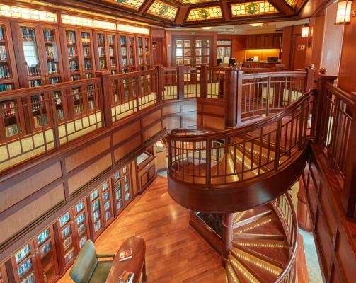 "A real showpiece is Queen Victoria’s library, which is a testament to Cunard’s commitment to provide an enriching experience for guests. Spanning two decks and connected by a spiral staircase, the beautiful library is decorated with rich wooden tones, golden lighting and a beautiful art deco-style ceiling, which adds to the ambience as you browse more than 8,000 books to find that perfect holiday read".