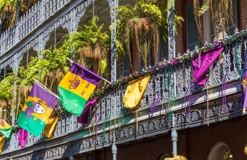 The origins of Mardi Gras can be traced to medieval Europe, passing through Rome and Venice in the 17th and 18th centuries to the French House of the Bourbons. From here, the traditional revelry of "Boeuf Gras," or fatted calf, followed France to her colonies. Expect vibrant parades, elaborate costumes, lively music, indulgent feasting, throwing beads from floats, wearing the colors purple, green, and gold, and eating King Cake.