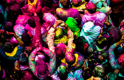 Holi is the big Hindu festival of Colours, Love, and Spring, featuring people throwing coloured water and powders at each other in celebration. With roots in Indian mythology it's associated with a story of good forces triumphing over Hiranyakashipu, a demon king.