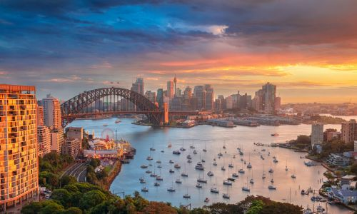 Sydney Habour offers a genuinely iconic backdrop to watch the sun hit the horizon at the end of a day's sightseeing. The Opera House and Harbour Bridge leap out of the city's skyline as it is silhouetted against the colourful sky.