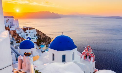 Witness the sun dip into the caldera from the ship or head up to one of the pretty white-washed villages. You'll be rewarded with the sun sinking into the azure waters, painting the sky with vibrant orange, pink, and purple hues.